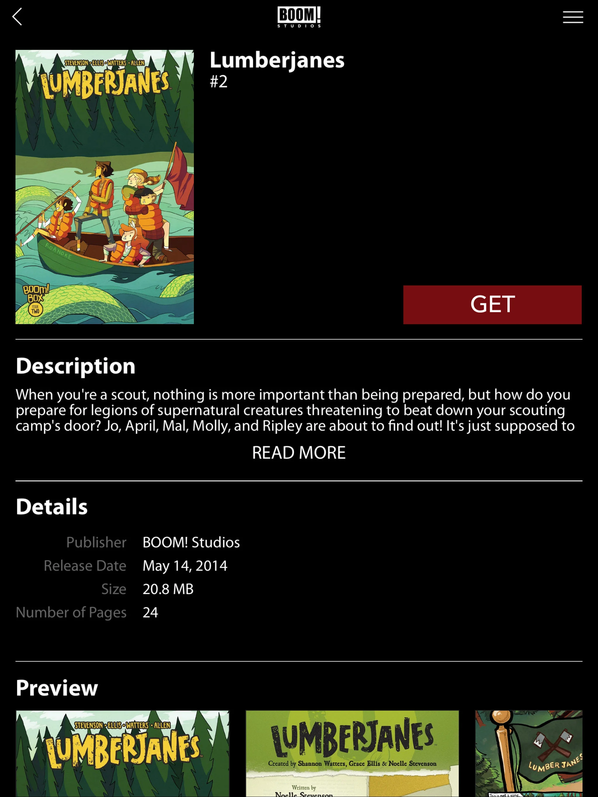 The BOOM! Studios app will offer day-and-date releases for every new BOOM! comic, graphic novel, collection, and more every Wednesday with a seamless reading experience on both smartphones and tablets. Never miss another issue ofLumberjanes, Mighty Morphin Power Rangers, WWE, Steven Universe, The Woods, and more from BOOM!.