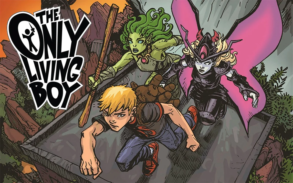 Nominated for four Harvey Awards, THE ONLY LIVING BOY tells the story of 12-year old Erik Farrell, who runs away from home only to find himself without his memory, stranded on a patchwork planet with danger lurking around every corner. Every day is a struggle to survive. Erik quickly allies himself with Morgan, a mermaid warrior, and Thea, a teenage princess from a mysterious insect race. He’ll need their help to escape the Dreaded Lord Baalikar and the evil Doctor Once and maybe, one day, find his way back home.