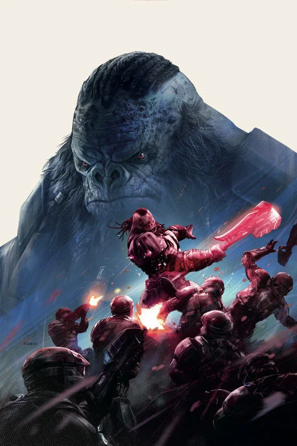 The first issue of Halo: Rise of Atriox finds Atriox, who is still a member of the massive alien collective known as the Covenant, leading his Brute brethren into an all-out assault on a UNSC outpost. Leader and creator of the Banished, Atriox is a fearsome warrior who rose to power by his charismatic personality and talent for shrewd strategic planning honed during his time serving as a member of the Covenant. Cullen Bunn composes this first issue, Claire Roe provides her gorgeous artistic skills to the Halo universe, Jeremy Colwell makes the illustrations pop with his gritty colors, and topping it all off is a breathtaking cover by Aleksi Briclot (The Art of Remember Me, Conan: Road of Kings).