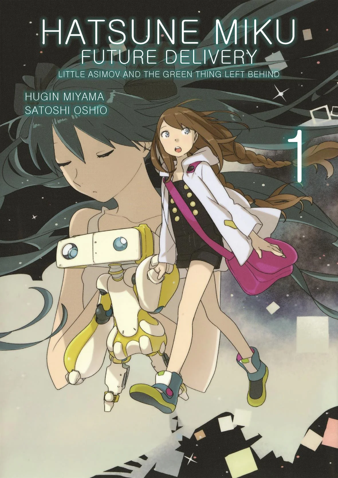 Writer Satoshi Oshio and artist Hugin Miyama tell a tale set in the distant future, where Asumi—a girl who has no clue to her memories but a drawing of a green-haired, ponytailed person—finds her only friend in Asimov, a battered old delivery robot. The strange companions travel the stars together in search of the mysterious “Miku,” only to learn the legendary idol has taken different forms on many different worlds!