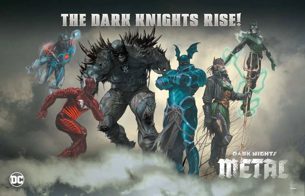 After teasing comic book fans with ominous shadow images of six evil Batmen from the Dark Multiverse several weeks ago, their final, terrifying images were revealed earlier this morning Comic-Con International: San Diego.