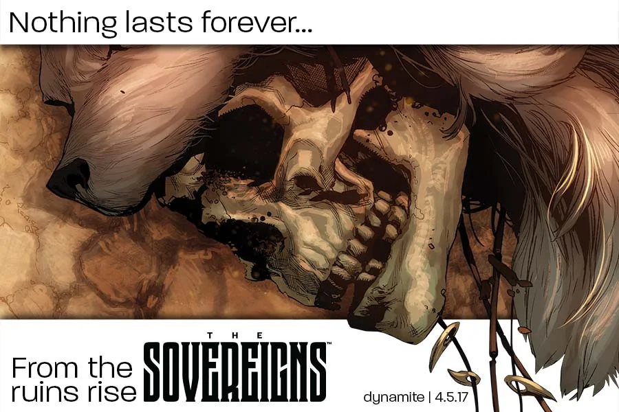The wording attached to this teaser was, "Nothing Lasts Forever..." which again, sounds more like you're a company is closing or being bought than an event teaser, but hey... none of my business. I'm going to take a swing in the dark and say that Dynamite is doing a shared universe or something... or it's just the most epic teaser for something new and we won't have any context to go with these teasers to make us care. Either way.