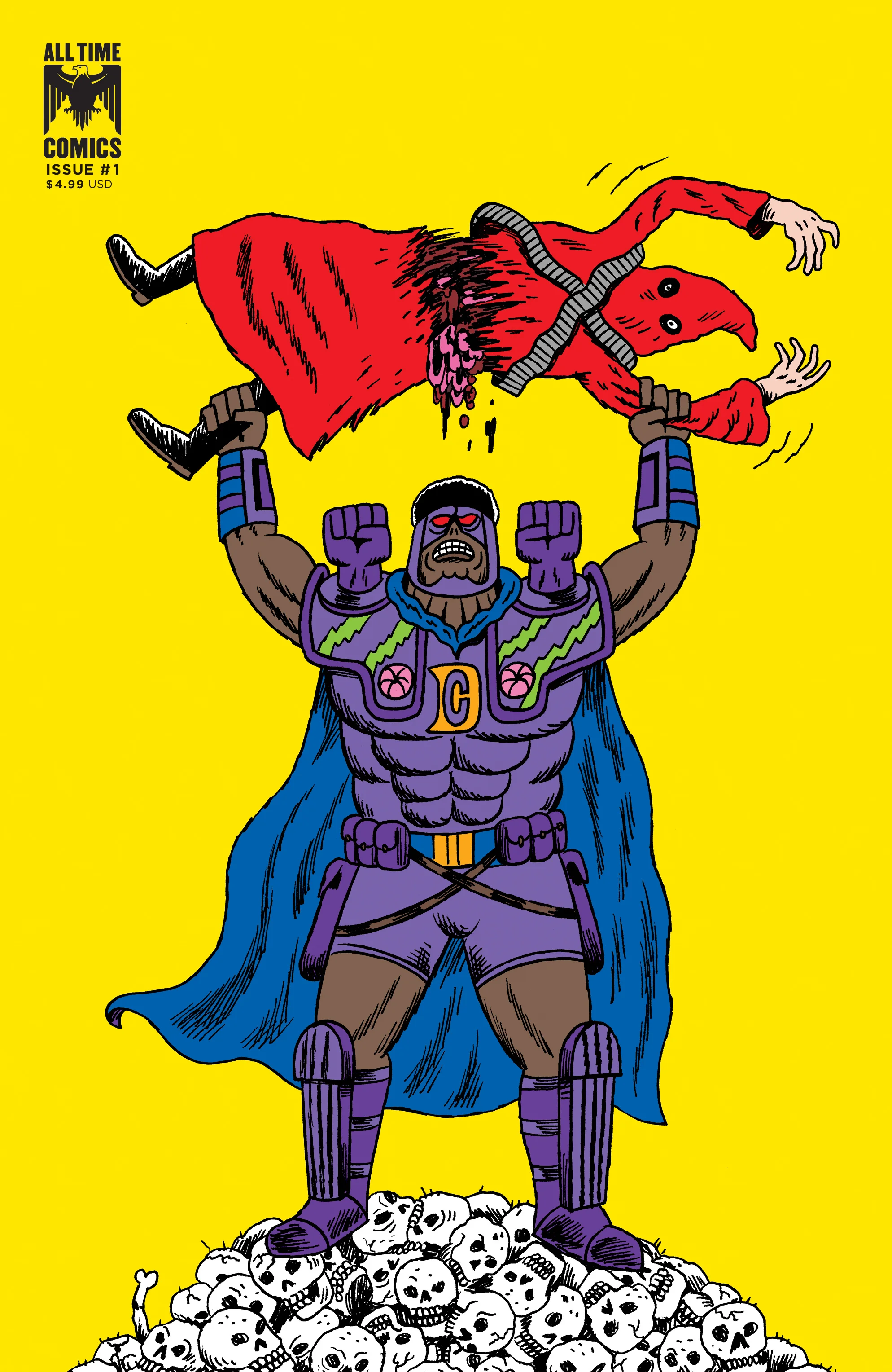 ALL TIME COMICS is the joint venture of the Bayer brothers: Josh Bayer, an underground comics artist and teacher, and acclaimed mainstream director Samuel Bayer, who launched his career 25 years ago with Nirvana’s “Smells Like Teen Spirit” video.
