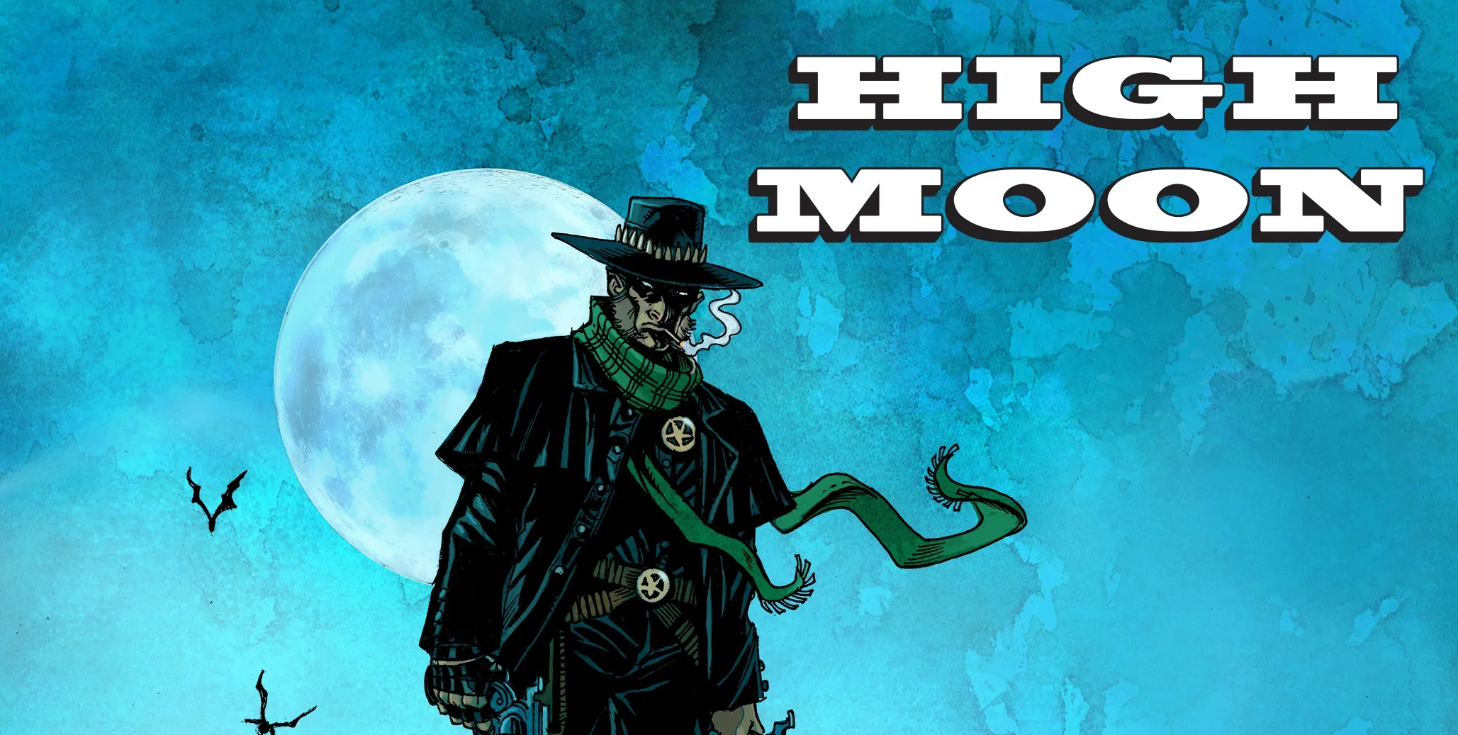 In HIGH MOON, former Pinkerton agent and current bounty-hunter Matthew Macgregor investigates a series of strange happenings in a small Texas town. Drought has brought famine and hardship to Blest. The summer heat pushes the temperature to unbearable heights during the day. The nights are even worse– for the streets are haunted by strange, unnatural creatures. And even as Macgregor works to uncover the truth about the creatures, he struggles to keep his own supernatural nature a secret.