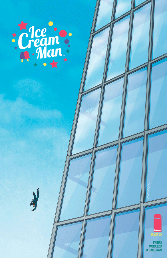 Free falling. The most surprising thing about the series is how strong it began, and how it does the impossible and keep getting better and better. If you missed issues 1-4 do not worry, each issue is a stand-alone tale thus far. Typically, the plot is about madness caused by the mysterious titular character, the Ice Cream Man. This issue is no difference besides the fact that he is never shown in the way he usually is. His catchphrase “lickity-split” is what distinguishes him and this time it is said by various other characters. This is what happens when an entire business building becomes affected by Ice Cream Man. The issue goes from a man jumping off a 100-floor building and confessing his sins, counting down to the bottom, and it moves to the business building and the madness that ensure. This is Ice Cream Man at his most ferocious, or at least so far.